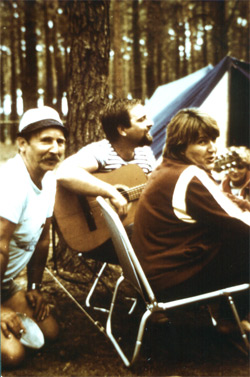 Spakowany zgodnie z wytycznymi kuzyna Rysia, oraz własnymi w tej kwestii doświadczeniami oczekiwałem w punkcie zbornym na zbiórkę uczestników. Była to grupa zielonogórska, spływ zaś ogólnopolski. Początek imprezy wyznaczono w Żydowie. Autobus nieco się spóźniał, uczestnicy schodzili się opieszale, w końcu po godzinie zapakowane na PKS-owski Star bagaże wyjechały a w ślad za nimi, autobusem my . Sierpniowy żar lejący się z nieba nie pozwalał oddychać. Mimo pootwieranych okien było duszno. Atmosfera była senna. Zaczynałem żałować, że dałem się namówić. W duchu powstała myśl, że te spływy są mocno przereklamowane. Obserwowałem nowe środowisko. Ludzie wydawali się zżyci ze sobą, mimo że dzieliły ich zainteresowania, wykonywane zawody, zajmowana pozycja w hierarchii społecznej a nawet wiek. Było jednak wśród nich coś, co w niezrozumiały sposób spajało tę grupę w jedną całość. Tym czymś była wspólna, wielka pasja. Pochłonęła tych ludzi całkowicie. Wsłuchałem się w rozmowy. Zaczynały się zazwyczaj od słów: "Pamiętasz, jak płynęliśmy Hańczą?, Obrą?,( czy jakąś inną rzeką?)". Po jakimś czasie, mimo upału znikła senność a pojawiło się zainteresowanie nowym, czymś, co czekało na nas tam, w Żydowie. Znikały gdzieś codzienne kłopoty i troski. W ich miejsce pojawiały się emocje związane z początkiem spływowej przygody.