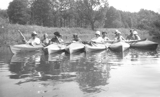 Osobny rozdział spływowej historii stanowiły dzieci. Myślę, że żaden inny wypoczynek nie daje maluchom tyle radości, co wczasy spędzone na wodzie. Rodzice, wbrew pozorom wcale nie mieli ze swymi pociechami kłopotu. Ich opieka często sprowadzała się tylko do ubierania, przebierania i układania do snu., bowiem z natury sympatyczne skrzaty stawały się od samego początku " publiczną własnością spływu". Tu nasuwa mi się na myśl 3-letni "Parapecik", nazywany tak od słowa, którym określał aparat fotograficzny. To niezwykle sympatyczne dziecko podbiło sobie serca wszystkich, łącznie z "Jego Wysokością" Komandorem, znanym z surowości i przestrzegania zasad dyscypliny spływowej. "Parapecik" hasał na biwaku ze wszystkimi angażując kogo się dało do swoich najwymyślniejszych zabaw. Było wielu chętnych do odgrywania roli wierzchowca, samolotu a w wodzie okrętu. Rodzice "Paraprcika" często gniewali się na synka, że znika gdzieś, a on bezpiecznie przebywał pod okiem innych opiekunów, pojadając sobie placki ziemniaczane lub ulubioną przez niego grochówkę. Jego odzywki w rodzaju: "Widziałeś, jak dawałem do biwangu!" przyprawiały o serdeczny śmiech nawet największych ponuraków. Tak rozweselał wszystkich "Parapecik", którego prawdziwego imienia nawet nie zdołałem poznać.