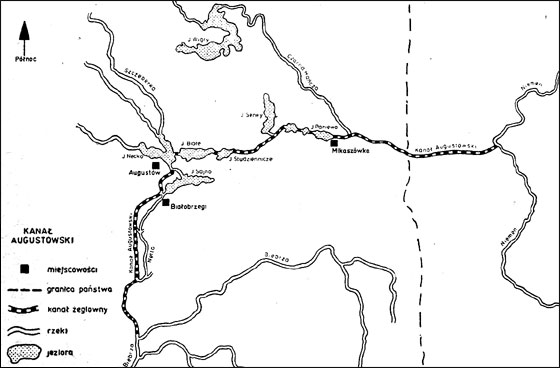 Zaprojektowana droga wodna, nazwana później Kanałem Augustowskim, o długości 103 km, w tym 40 km właściwego kanału, 26 km jezior i stawów i około 37 km skanalizowanych rzek, kosztować miała 9500000 zł. Zaczynając się od ujścia Biebrzy do Narwi biec miała dalej rzeką Nettą do Augustowa, stamtąd systemem połączonych przekopami jezior Necko, Białe, Studziennicze, Orle, Paniewo, Krzywe i Mikaszowo do Czarnej Hańczy, a tą do Niemna. We wstępnej wersji projektu Prądzyński chciał poprowadzić kanał przez jeziora Sajno i Białe z ominięciem Augustowa. Ostatecznie jednak w celu ożywienia gospodarczego sennego dotąd miasta zmienił trasę i zaplanował nawet w Augustowie budowę dużego portu, mającego pomieścić jednorazowo około 100 statków.