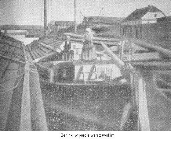 Berlinki kanałowe i gdańskie zabierały od 600-1000 korców, zanurzając się na 2-2 2/3 stopy***, w rejsie w górę rzeki obsługiwane były przez 7 ludzi, a w dół - przez 4. Różniły się między sobą tylko tym, że gdańskie były szersze i nie mogły być eksploatowane na kanałach. Półberlinki - podobne w kształcie do berlinek, tyle że o ładowności od 300-480 korców i 4 ludziach załogi. Jadwiżki - obsługa 4 flisaków, ładowność 240-450 korców, zanurzenie 2 stopy. Bajdaki - 4 ludzi, 200-300 korców, zanurzenie 2 stopy. Krypy - 3-5 ludzi i 250 korców ładunku. Baciki i krypki - 2-3 ludzi i 30-150 korców ładunku.