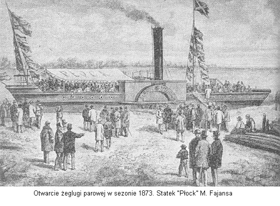 Trzy parawce: Wisła, Sandomierz i Narew dały początek "Towarzystwu Żeglugi Parowej M. Fajansa", które dzięki zaprowadzeniu sprężystej administracji rozrasło się i aż do I wojny światawej utrzymało prymat wśród przewaźników na rzekach Królestwa Polskiego. Zarząd Towarzystwa mieścił się w Warszawie przy ul. Trębackiej 9. Do roku 1880 regularna żegluga pasażerska utrzymywana była tylko na trasie Warszawa - Płack, i to jednym statkiem. Z Warszawy wypływał on w paniedziałek, środę i piątek o godz. 8.00, do Płocka docierał około godz. 16.00-16.30. Rejsy powrotne odbywał we wtorki, czwartki i soboty. Niedziela zarezerwowana była na spacery po Wiśle w kierunku Jabłonny. Dopiero po upływie 10 lat działalności zdołał Fajans wznowić regularną żeglugę na odcinku Płock - Włocławek. Wkrótce rejsy te zostały zawieszone ze względu na konkurencyjną działalność nadwiślańskiej kolei żelaznej, oferującej transport szybszy i tańszy.