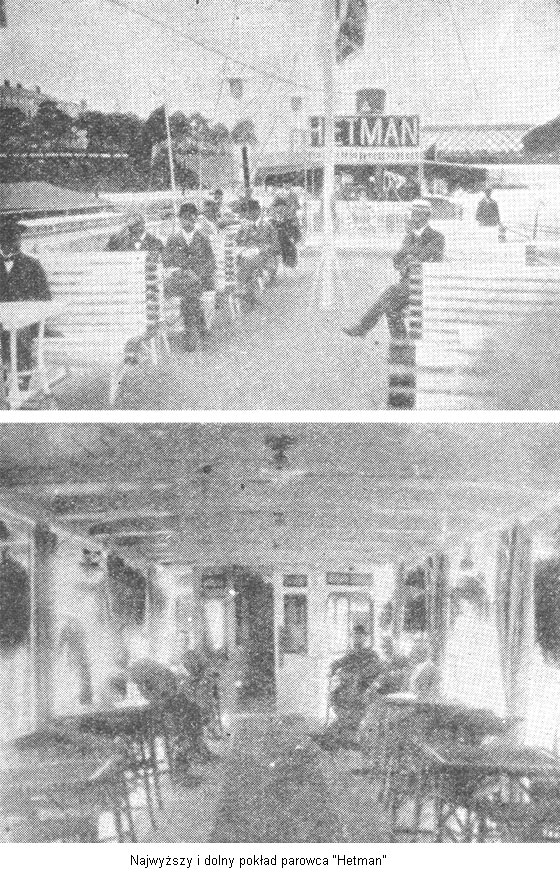 W następnych latach grono przedsiębiorców żeglugowych powiększyło się o kilku indywidualnych właścicieli statków oraz towarzystwo komandytowe "Krater", którego jednostki obsługiwały linię Warszawa - Płock - Włocławek. Kierownikami towarzystwa byli przemysłowcy Cywiński i Młodzianowski. Dysponowali oni parowcami: Hetman, Kolos, Krater i Wilanów. Statek pasażerski Hetman zasługuje na szczególną uwagę. Był to wybudowany w stoczni należącej do towarzystwa kolos dwupokładowy, zabierający ok. 700 pasażerów. Posiadał wszystkie urządzenia spotykane na nowoczesnych statkach rzecznych na zachodzie Europy. W ogóle usługi świadczone przez towarzystwo "Krater" wyróżniały się dobrą jakością. Współcześni porównywali komfort pasażerskich statków "Krateru" do tych, które zapewniał publiczności A. Zamoyski.