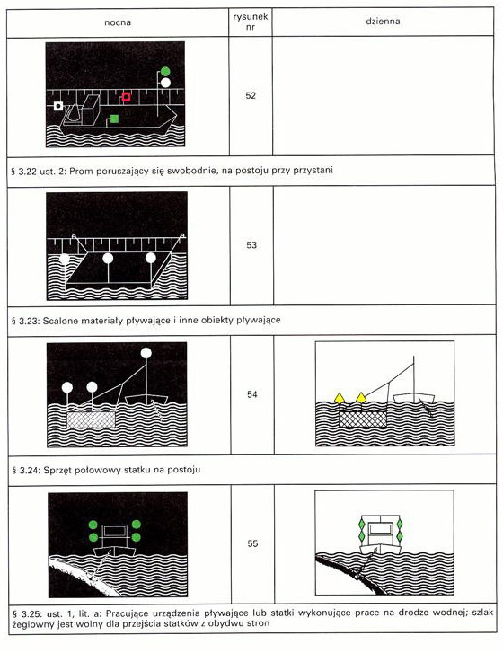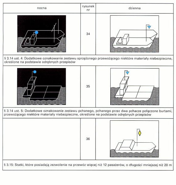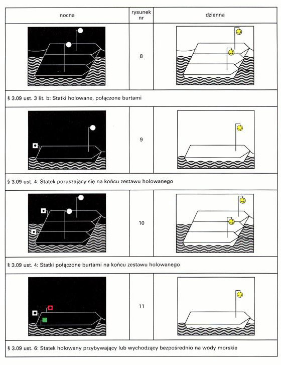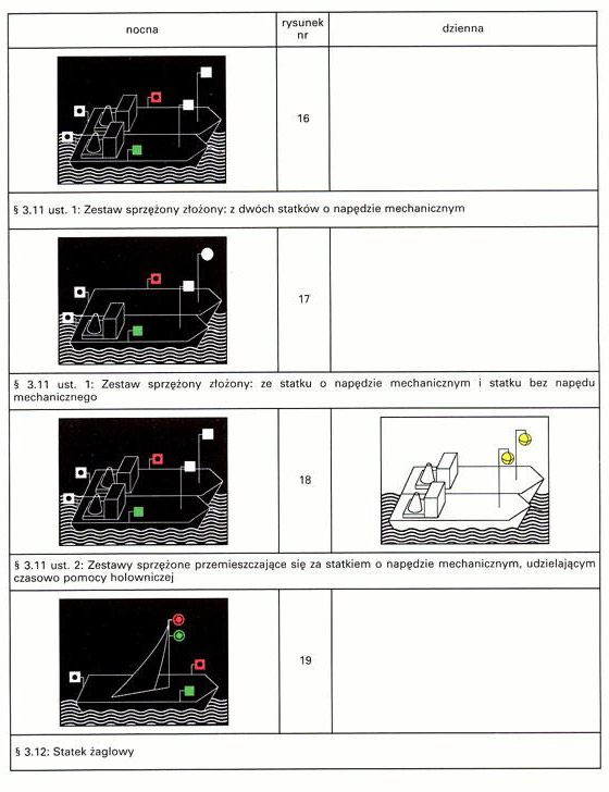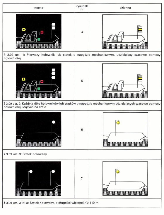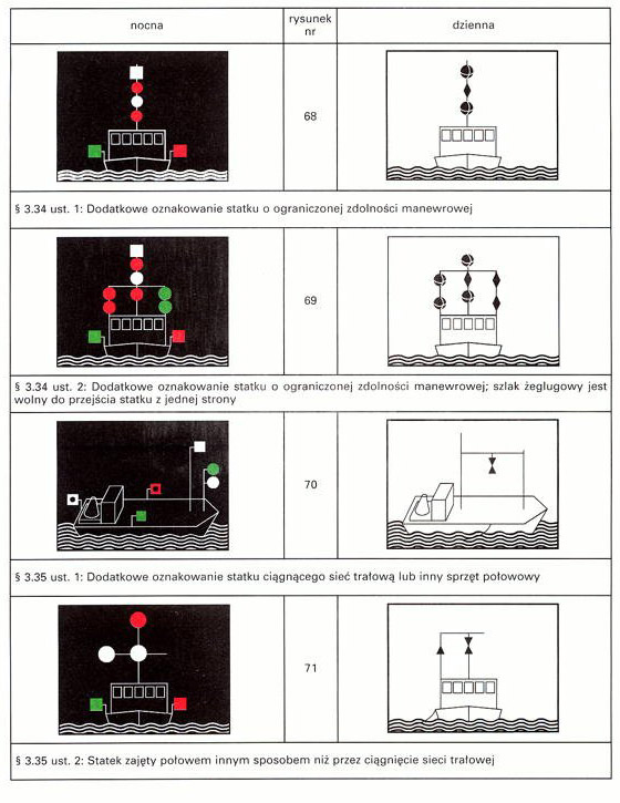 Rysunki przedstawiające statki obowiązane pokazywać dodatkowe światła lub znaki zawierają: