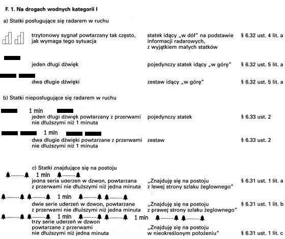 c) Dla trzytonowych sygnałów dźwiękowych nadawanych przez statki w warunkach ograniczonej widzialności, prowadzonych w oparciu o informacje radarowe, podstawowa częstotliwość sygnałów powinna wynosić 165 do 297 Hz, o różnicy pełnych dwóch tonów między najniższym i najwyższym tonem.