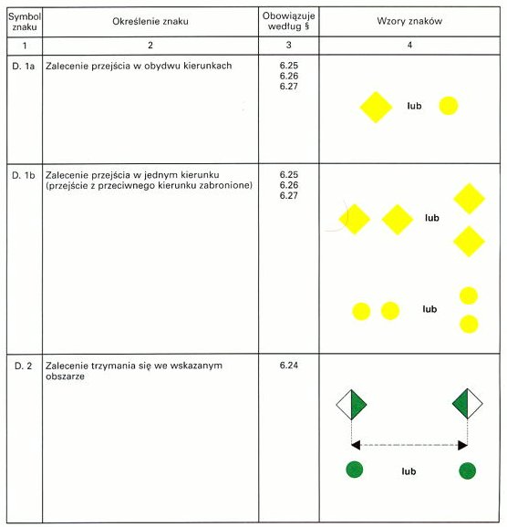 Znak szczytowy: bez znaku szczytowego, a w sytuacjach koniecznych - żółta prostokątna tablica z odrębnym napisem lub znakiem