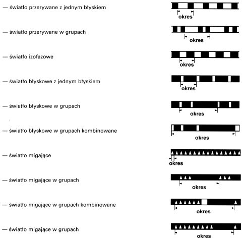 Rytm światła: dowolny wyróżniający się, lecz niekolidujący z rytmami innych świateł przewidzianych w przepisach