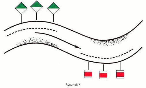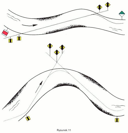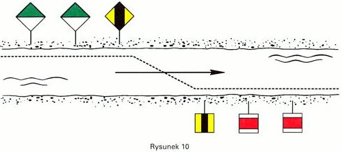 Znaki te wskazują miejsca odgałęzienia kanału, wpływ albo wypływ rzeki z jeziora lub szerokiej drogi wodnej oraz ułatwiają odszukanie tego wyjścia.