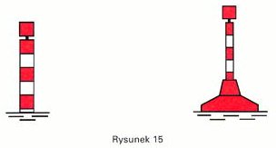 Kształt: pława kulista, kolumienka ze znakiem szczytowym lub tyka ze znakiem szczytowym