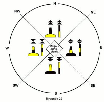 2. Wymienione w pkt 1 oznakowanie wejść może być również stosowane do oznakowania wejść do bocznych dróg wodnych, ujść rzecznych i do wąskich zatok.