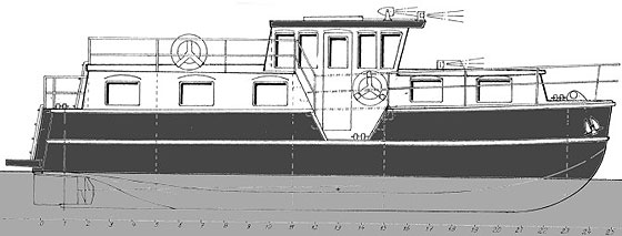 Przypomniał mi się projekt motorówki mieszkalnej MM-101 narysowany przez Jerzego Maćkowiaka. I tak od pomysłu do czynu. Po zakupie dokumentacji, a była ona sporządzona jako jednostka stalowa, szukałem wykonawcy kadłuba (ja pracuję głównie w drewnie i w laminatach). Stocznia rzeczna w Bydgoszczy mogłaby to zespawać w granicach 100-120 tys zł. To niestety okazało się za dużo... Postanowiłem więc dostosować tę konstrukcję do wersji laminatowej. Dodałem stewę dziobową i kil na całej długości kadłuba oraz zaokrągliłem połączenia płaszczyzn.