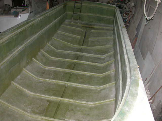 Po ustaleniu z konstruktorem diagramu laminowania zbudowałem jednokrotną formę negatywową kadłuba.