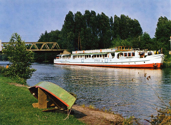 Moim jednak celem jest przypomnienie spektakularnej przebudowy pasażerskiego parowca "Wintermärchen II" na kabinowy motorowiec "Spree", którego napewno wielu z nas widziało swego czasu na dolnej Odrze czy w Szczecinie. Dokonała tego ówczesna stocznia Schiffswerft Aken nad Łabą w latach 1961 - 64.
