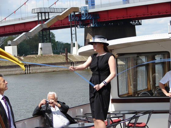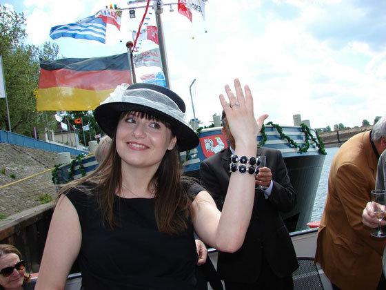 Byłem zaproszony przez Wieśka na tą wspaniałą uroczystość, ale zbieg złych okoliczności (oddawałem właśnie jeden z czarterowanych statków) nie pozwolił mi pojechać do Zagłębia Ruhry. Jak już wspomniałem na początku artykułu "Matką chrzestną" była Beata Marcinkowska. Jak tradycja nakazuje - tak też było i wystąpiła ona w stylowym kapeluszu, ale to nie wszystko. Przedstawiciel stoczni Breko B. V. z Papendrechtu - pan Ron Nelemann - podarował Beacie na pamiątkę "Chrztu" pierścionek z brylantem.
