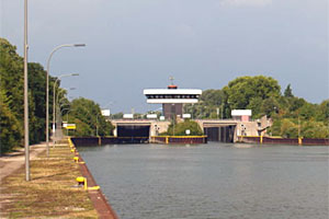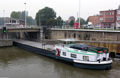 Po kilku dniach ładowania etapami zwojów blachy byłem gotów do drogi powrotnej. Portem docelowym ładunku był Dortmund. W telefonicznej rozmowie z przedstawicielem polskiej żeglugi ustaliliśmy, ze drogę powrotną odbędę z postojem w porcie (a nie na Scheldzie z pływami) w Antwerpii. Chcieliśmy mieć możliwość bezpiecznego pozostawienia statku na kilka godzin, aby móc spokojnie odwiedzić w szpitalu naszego bosmana. "Szef" okazał zrozumienie i zapowiedział, że przyjedzie po nas samochodem oraz zawiezie nas do szpitala, bo nawet nie wiedzielibyśmy, który to szpital i jak dojechać. Drogę powrotną na statek mieliśmy odbyć samodzielnie. Zadowoleni z pomyślnego ustalenia tych szczegółów ruszyliśmy do Brukseli. Pokonując w drodze powrotnej kolejno śluzy Lembeek, Halle, Ruisbroek, Anderlecht (fot. obok) dotarliśmy do miejsca, gdzie staliśmy poprzednio. Nie odmówiłem sobie wykorzystania postoju na przyjemność ponownego spacerku po ulicach miasta i kilku knajpkach. Nie wiadomo było przecież kiedy taka okazja nadarzy się ponownie. Później okazało się, że był to mój ostatni rejs do Belgii.