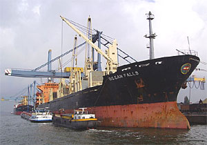 Nawet nie przypuszczałem, że czekała mnie jeszcze jedna "atrakcja" tego rejsu. Wzorując się na "starych, reńskich wygach" zakotwiczyłem na noc między główkami, w cichej wodzie. Rano obudziłem się "leżąc" barką w poprzek na niższej główce. Okazało się, że jedna z kotwic dziobowych trafiła dokładnie w leżącą na dnie rzeki, wyrzuconą oponę samochodową, która owinęła się na jej łapach i sprawiła, że ta kotwica wcale nie trzymała. Druga z kotwic nie była w stanie utrzymać statku "sztywno", a jedynie sprawiła "łagodne ułożenie się" statku wzdłuż tamy regulacyjnej dziobem ku środkowi nurtu a rufą do brzegu. Wytrawni łodziarze zdają sobie sprawę, że odpłynięcie od główki w tym ułożeniu to sprawa przegrana. Po kilku próbach zrezygnowałem i postanowiłem poprosić o pomoc przepływające statki. Oczywiście obchodziło to wszystkich jak bzyk upierdliwej muchy. Po wielu kwadransach wymachiwania cumą nad głową (jako znaku prośby o odciągnięcie z tej cholernej główki) wreszcie zlitował się nade mną taki belgijski "szczupaczek" - jednośrubowy 300-400 tonowy i relatywnie niezbyt mocny stateczek towarowy. Pomimo zgrabnych prób nie udało mu się odciągnąć mnie na taką odległość od główki, abym mógł o własnych "maszynach" wydostać się z tej sytuacji. Belg miał jednak "normalne" wyposażenie tzn. radiotelefon i wezwał motorówkę Zarządu Dróg Wodnych Królestwa Holandii. Przypłynęło takie "cuś" ... tak gdzieś z 8m długie.... Chłopaki w galowych mundurach.... Pocmokali nad pięknie "wpasowaną" w moją kotwicę "ich" oponą.... Poprosili o podanie holu.... Założyli na dziobowy polerek....