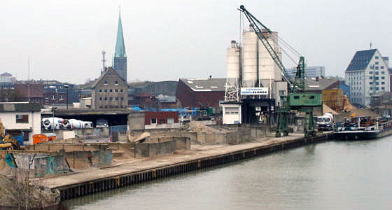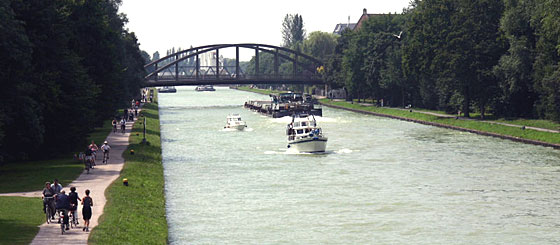 W Dortmundzie nie zabawiliśmy długo. Po wyładowaniu blachy w zwojach, którą przywieźliśmy z Clabecq otrzymałem dyspozycję przejścia do Hamm po nawozy sztuczne z przeznaczeniem do Minden. Powrotna droga kanałem Dortmund-Ems do kilometra 21 , gdzie odgałęzia się kanał Datteln-Hamm nie zabrała wiele czasu. Kanał Datteln-Hamm ma w sumie 47 km, dwie śluzy i kończy się obrotnicą w Schmehausen. Port Hamm leży jeszcze przed pierwszą ze śluz więc droga nie trwała długo i jeszcze tego samego dnia rozpoczął się załadunek worków z saletrą amonową. Załadunek trwał dość długo bo worki ładowane były w unosach po 15 szt. i układane w ładowni niemal ręcznie. Po zakończeniu załadunku i załatwieniu niezbędnych formalności papierkowych oraz określeniu przewidywanego dnia dotarcia do Minden wyruszyłem w drogę powrotną kanałem Datteln-Hamm do kanału Dortmund-Ems. Tego dnia dotarłem do Münster - miasta leżącego na 66 kilometrze tego kanału. Tu zatrzymałem się na postój. Kanał Dortmund-Ems w Münster - (fot. niżej) miał już wówczas pionowe ściany, umocnione tzw profilami Larsena i można było cumować dosłownie wszędzie - od razu mając możliwość przejścia promenadą do miasta. Takie usytuowanie miejsc postojowych wręcz zachęca do zwiedzenia, co czyniłem zawsze ilekroć tędy przepływałem.
