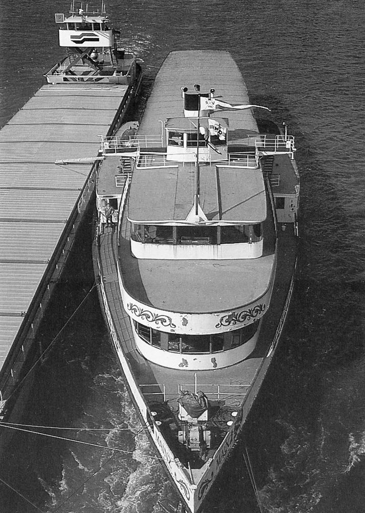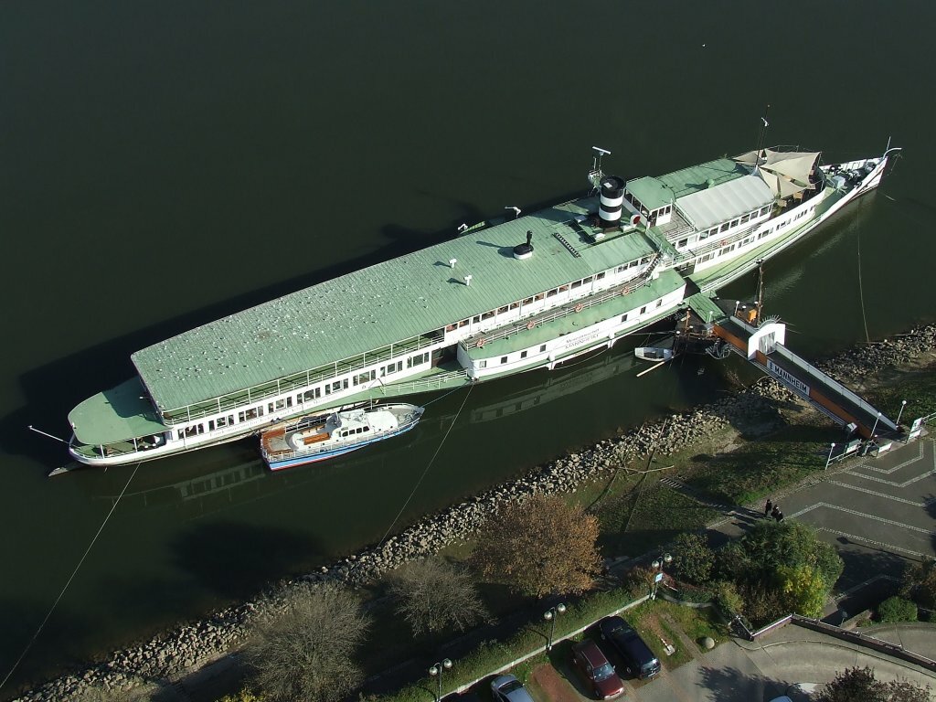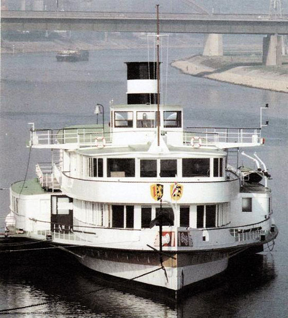Historyczny parowy bocznokołowiec, kiedyś wspaniały statek wycieczkowy dla 2500 pasażerów. W zeszłym roku świętował swoje 80 urodziny. Jego wodowanie odbyło się pod koniec maja 1929 roku, a 4 czerwca wypłynął w dziewiczą podróż po Renie.