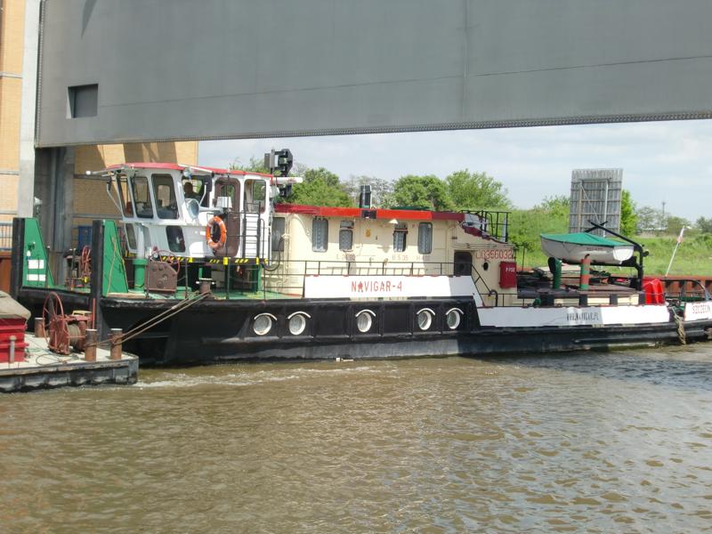 Pchacz "Navigar 4" przechodzi pod zaporą kanałową.