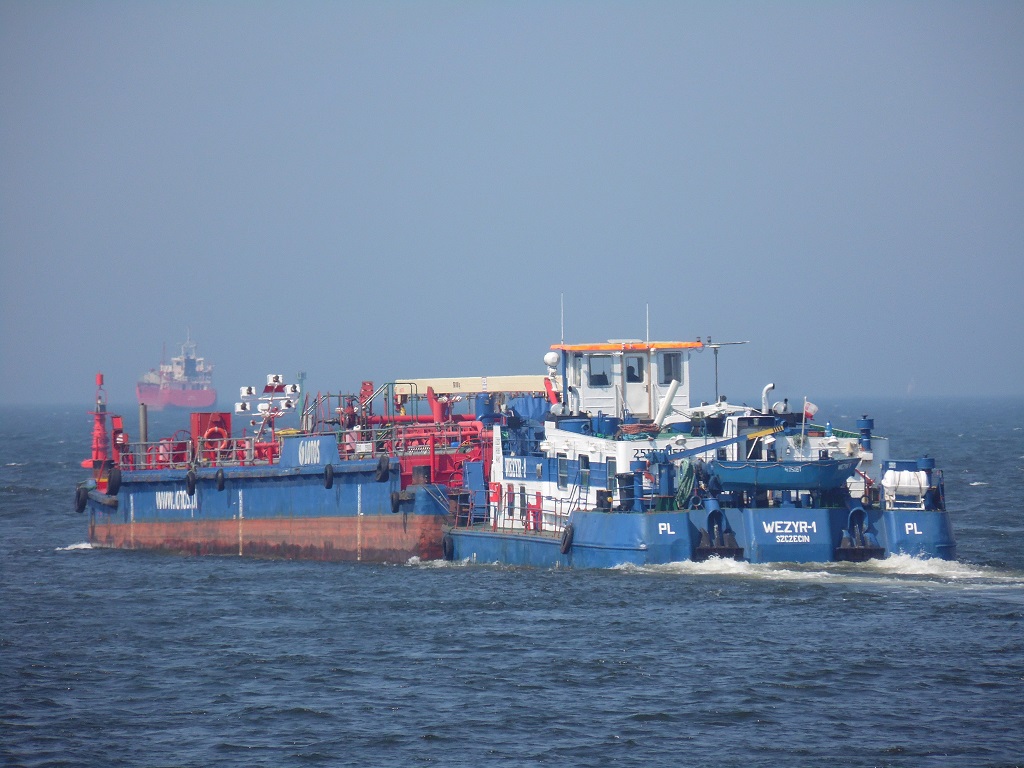Pchacz WEZYR 1 wraz z barką paliwową BALTICA na Zatoce Gdańskiej.Przejście Gdańsk Gdynia 2017.05.20