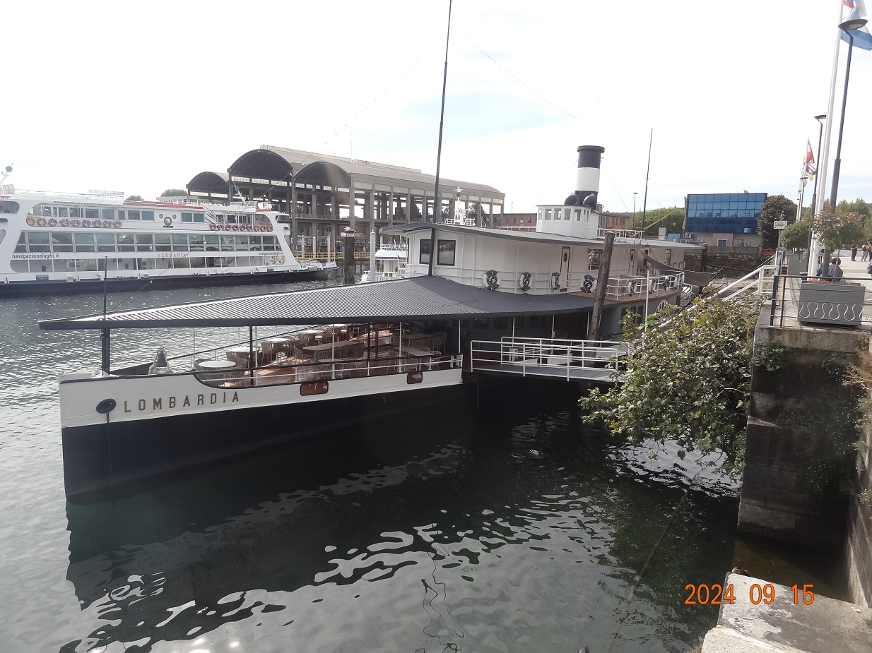 Zabytek LOMBARDIA jako restauracja przy promenadzie w mieście Arona - południowo-zachodni brzeg jeziora Maggiore Włochy.