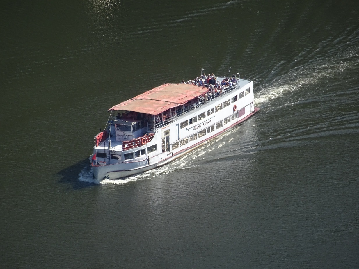 Pasażer Maria Croon płynie po rzece Saara w okolicy miasta Mettlach region Saaraland Niemcy. Zdjęcie zrobione w rejonie zakola rzeki SAARY.