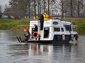 W dniu wczorajszym ekipa "morsów” z klubu Dębowa rozpoczęła kolejny, ósmy etap spływu Odrą pod hasłami "Przywrócić żeglugę na Odrze", "Walory turystyczno-krajoznawcze Odry", "Odra rzeką integracji". Etap ten rozpoczął się na km 282,65 rzeki Odry, czyli na styku Odry skanalizowanej i Odry swobodnie płynącej. Etap rozpoczęto o godz. 10.30 na końcówce sztucznej fali, której konieczność wymusiło zagwarantowanie odpowiedniej głębokości dla statku szkolnego jako bazy ekipy nurków.