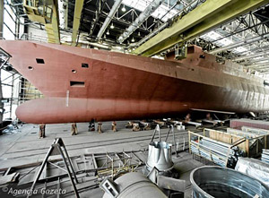 Zakończenie budowy "Gawrona" skomplikuje i tak trudną sytuację Stoczni Marynarki Wojennej, która - z uwagi na zadłużenie - znajduje się od 2011 r. w fazie upadłości likwidacyjnej, ale wciąż prowadzi działalność i zatrudnia kilkuset pracowników.