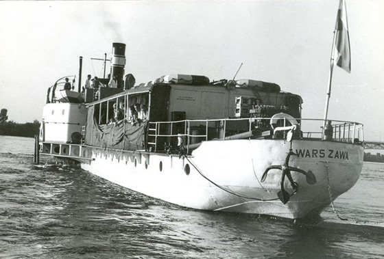 Siódmego lipca załadowaliśmy się na ciężarówki i pojechaliśmy do Płocka, droga nad morze pomyślana była jako swoista atrakcja turystyczna - rejs statkiem po Wiśle, aż do Gdańska. Samochody zawiozły nas na przystań "białej floty" u podnóża wspaniałej, płockiej skarpy. Jakiś czas oczekiwaliśmy w porannym chłodzie, aż statek dobije do portu. Rejs bowiem rozpoczynał się w Warszawie, przeszło sto kilometrów w górę Wisły, na przebycie których pracowity parowiec potrzebował całej nocy. Wkrótce przypłynął.