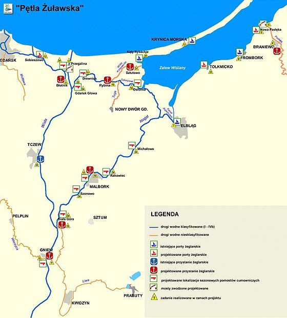 Realizowany od jesieni 2010 r. projekt "Pętla Żuławska - rozwój turystyki wodnej" ma charakter ponadregionalny. Zaangażowanych jest 18 podmiotów - głównie lokalne samorządy, w tym województwa pomorskiego i warmińsko-mazurskiego. Inwestycja obejmuje rozbudowę trzech portów żeglarskich - w Elblągu, Krynicy Morskiej oraz w Tolkmicku, budowę sześciu przystani (Biała Góra, Braniewo, Nowa Pasłęka, Błotnik, Osłonka, Malbork "Park Północny"), dwóch pomostów cumowniczych - w Tczewie i Drewnicy, a także przebudowę dwóch mostów zwodzonych (Gdańsk-Przegalina, Nowa Pasłęka). Ponadto zelektryfikowana ma być śluza Gdańska Głowa.Pod koniec maja zakończy się rewitalizacja ponad 300-kilometrowego szlaku wodnego Pętla Żuławska, znajdującego się w delcie Wisły i Zalewu Wiślanego. Powstanie m.in. 300 nowych miejsc do cumowania dla jednostek pływających.