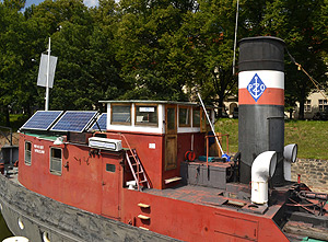 I w ten oto sposób RZGW jakby stało prekursorem zastosowania energii promieniowania słonecznego zaliczanej do odnawialnych źródeł energii na odrzańskich statkach śródlądowych. Jest już co prawda zastosowany taki sposób pozyskiwania energii elektrycznej na bydgoskim tramwaju wodnym, ale nie ma co porównywać konserwatywnej Odry do postępowej Brdy.W miniony czwartek przy Wybrzeżu Wyspiańskiego przy nielegalnym już miejscu postoju obiektów Fundacji Otwartego Muzeum Techniki doszło do spektakularnego wydarzenia jakim było zamontowanie i uruchomienie mini elektrowni słonecznej na pokładzie HP Nadbor składającej się z zestawu modułów fotowoltaicznych o mocy około 1 kw. "Motorem napędowym" było odcięcie energii elektrycznej z sieci napowietrznej przez RZGW.