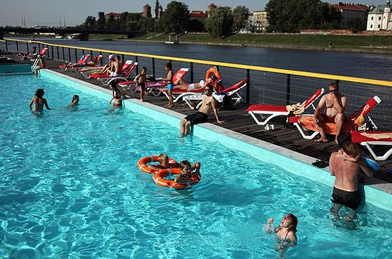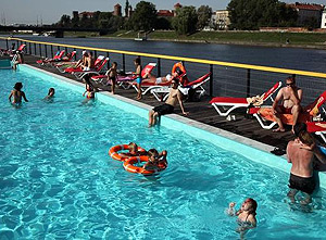 Basen w barce pływającej na Wiśle działa. Właściciel Plaży dostał wszystkie niezbędne pozwolenia i tylko czekał na sprzyjającą pogodę. Jest to jedyna w Polsce pływająca barka z basenem, dodatkowo w centrum Krakowa. Basen o wymiarach: 25 metrów długości, do 2 metrów głębokości czynny jest w każde słoneczne dni od 11 do 19. Jednorazowo może skorzystać z niego 30 osób. Kwota, która pozwoli na zabawę w wodzie i leżakowanie wynosi 20 zł za godzinę. Rodzice za dzieci do lat 10 zapłacą połowę mniej. Wielu uważa, że to jednak za drogo.