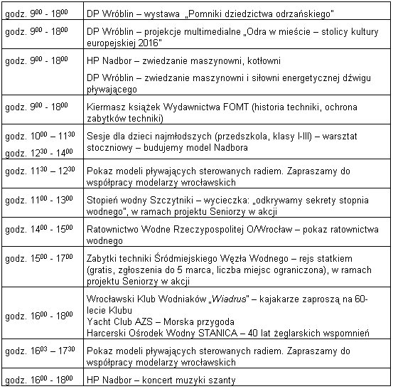 Będzie to dzień pełen wrażeń, w którym zwiedzanie statków, filmy, gawędy kapitanów, którzy pracowali na Odrze i europejskich drogach wodnych, przybliżą dzieje żeglugi odrzańskiej, walory kulturowe wrocławskich budowli wodnych, bogatą tradycję i potrzeby jutra – odbudowy Odrzańskiej Drogi Wodnej, budowy kanału Odra – Dunaj, wielkiego transeuropejskiego szlaku komunikacyjnego Północ-Południe.