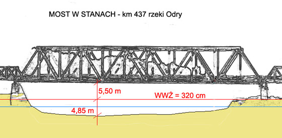 Jednym z dwóch najniższych mostów na ODW jest most kolejowy w Stanach (nieco niższy jest most w Głogowie). Dla tego mostu ustalono prześwit przy WWŻ na 3,9 m. Wskaźnik WWŻ ustalono natomiast na poziomie 480 cm na wodowskazie w Nowej Soli, przy czym ten wodowskaz określa