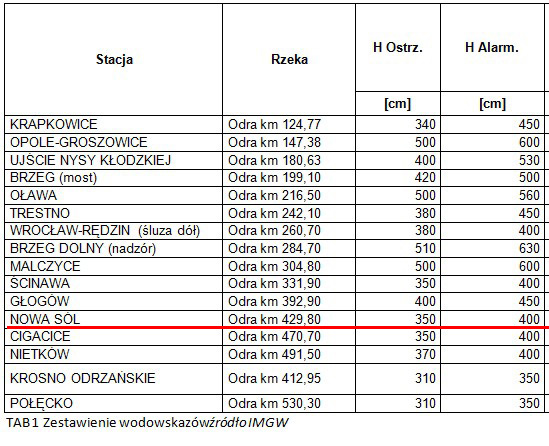 tabela wodowskazów: IMGW