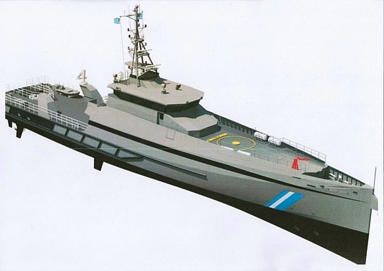 Obok pchaczy trwa budowa niezwykle ekscentrycznej w swej urodzie jednostki pływającej pod tajemniczym kodem SPa 5009. Jednostka ta to statek patrolowy dla greckiej straży granicznej.