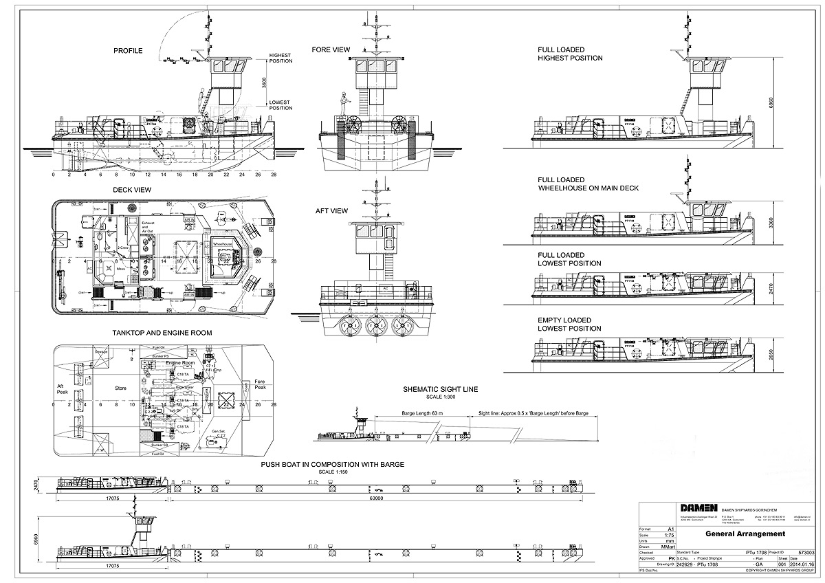 Wracając do tematu pchaczy – są one budowane w stoczni Damen w Koźlu o roboczym symbolu PTU 1708. Pchacze te będą wyposażone w trzy silniki Caterpilar typu C18 TA ACERT/A o łącznej mocy 1341 kW (1800 KM) uzyskanej przy 1800 obrotach.