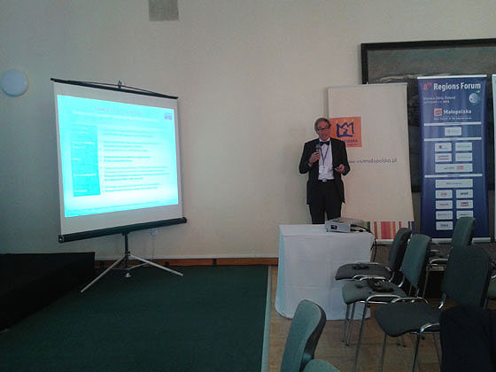 4.09.2014 - w ostatnim dniu XXIV Forum Ekonomicznego w Krynicy - odbyła się debata o żegludze śródlądowej i drogach wodnych jako doskonałym wsparciu logistyki transportu wewnątrz lądu. Debata była debatą jedynie z założenia, być może dlatego że dyskusji nie było, bo... nie było komu dyskutować. Poza osobami towarzyszącymi panelowi (czyli moja skromna osoba, asystentka pani Grigore, pan Marek Marszałek - reprezentujący organizatora debaty, tłumaczy i dwu hostess) na sali było zaledwie cztery osoby jako publiczność. Oczywiście organizatorowi nie udało się zaprosić przedstawicieli Ministerstwa Infrastruktury i Rozwoju i KZGW. Nie było też nikogo ze ZPAŚ czy UŻŚ.
