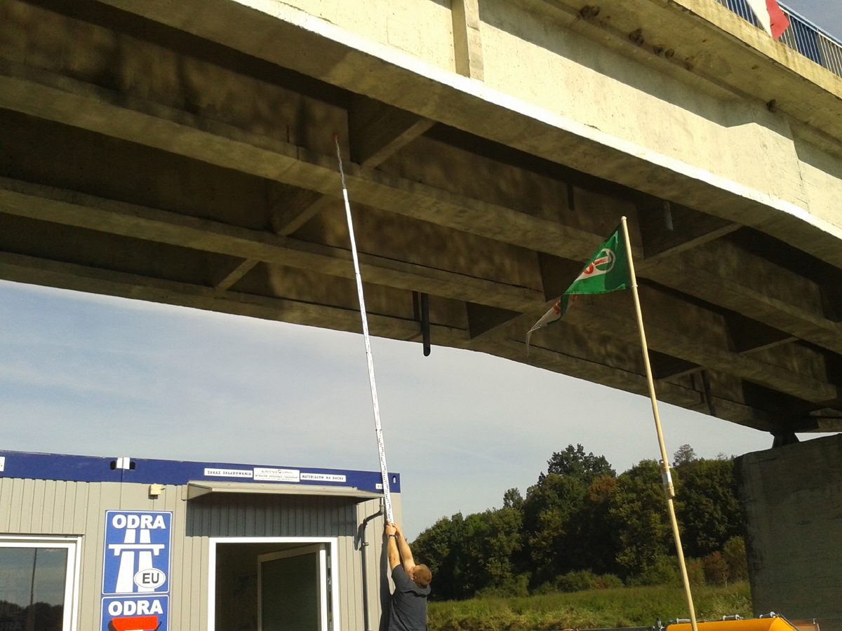 1. O rzekomo ponad 50 mostach do podniesienia aby mówić o modernizacji do klasy IV - wszystkie mosty przeszliśmy z ładunkiem o wysokości od lustra wody 5,2 m z zapasem co najmniej 1 m (najniższy most w Głogowie - moment pomiaru na fotografii). Ergo: wszystkie mosty przy stanach wód oscylujących w górnej strefie stanów średnich maja prześwity powyżej 6 m co odniesione do koniecznej korekty wskaźnika WWŻ (najwyższej, bezpiecznej dla żeglugi wody) daje prześwity 5,25 m (IV klasa żeglowności - międzynarodowa).