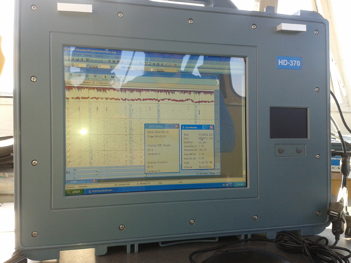 Sondowanie całej trasy prowadzono w sposób ciągły impulsami co 1 sekundę (czyli co ok. 4 m). Każdy impuls ma ściśle przyporządkowane koordynaty (długość i szerokość geograficzną) gdyż wysokiej klasy echosonda sprzężona była z systemem GPS.
