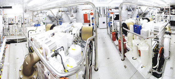 Obydwa dwunastocylindrowe silniki główne typu 12V4000 M73L mają po 2160 KW przy 2050 obr/min i nadają statkowi prędkość 22 węzły. Odznaczają się obok czystego spalania i niskiego zużycia paliwa, wysoką mocą z cylindra i zwartą budową – szczególnie ważny faktor dla jachtów. Wiadomo że tego rodzaju sportowe jednostki muszą błyskawicznie osiągnąć prędkość maksymalną, ale mają tylko niewiele miejsca na mocny zespół napędowy.
