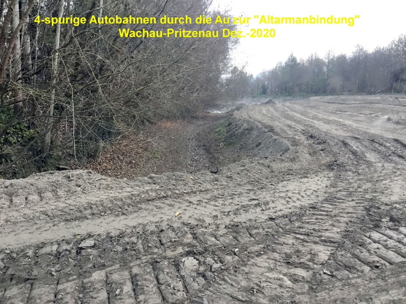 Czteropasmowa autostrada budowana w Au przez starorzecze - Pretzenau-Augebiet-Wachau - grudzień 2020