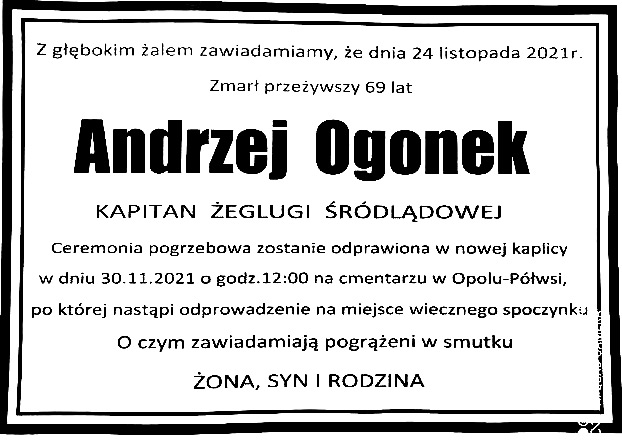 Wczoraj - tj. 24.11.2021 - po ciężkiej chorobie zmarł Andrzej Ogonek, kapitan żeglugi śródlądowej, absolwent wrocławskiego TŻŚ z roku 1971. W szkole był członkiem kultowej już grupy poetyckiej "Sylaba 68".