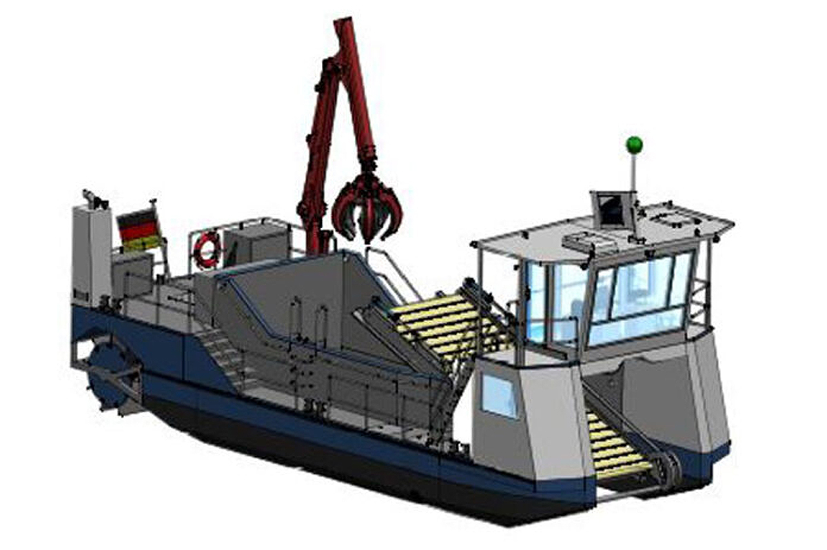 Pędnikiem jest koło łopatkowe poruszane hydraulicznie. System przenośników do zbierania i usuwania drewna oraz wodorostów z Jeziora Bodeńskiego jest również napędzany hydraulicznie. Wyposażenie obejmuje też dźwig pokładowy a zanurzenie wynosi jedynie 65 cm.