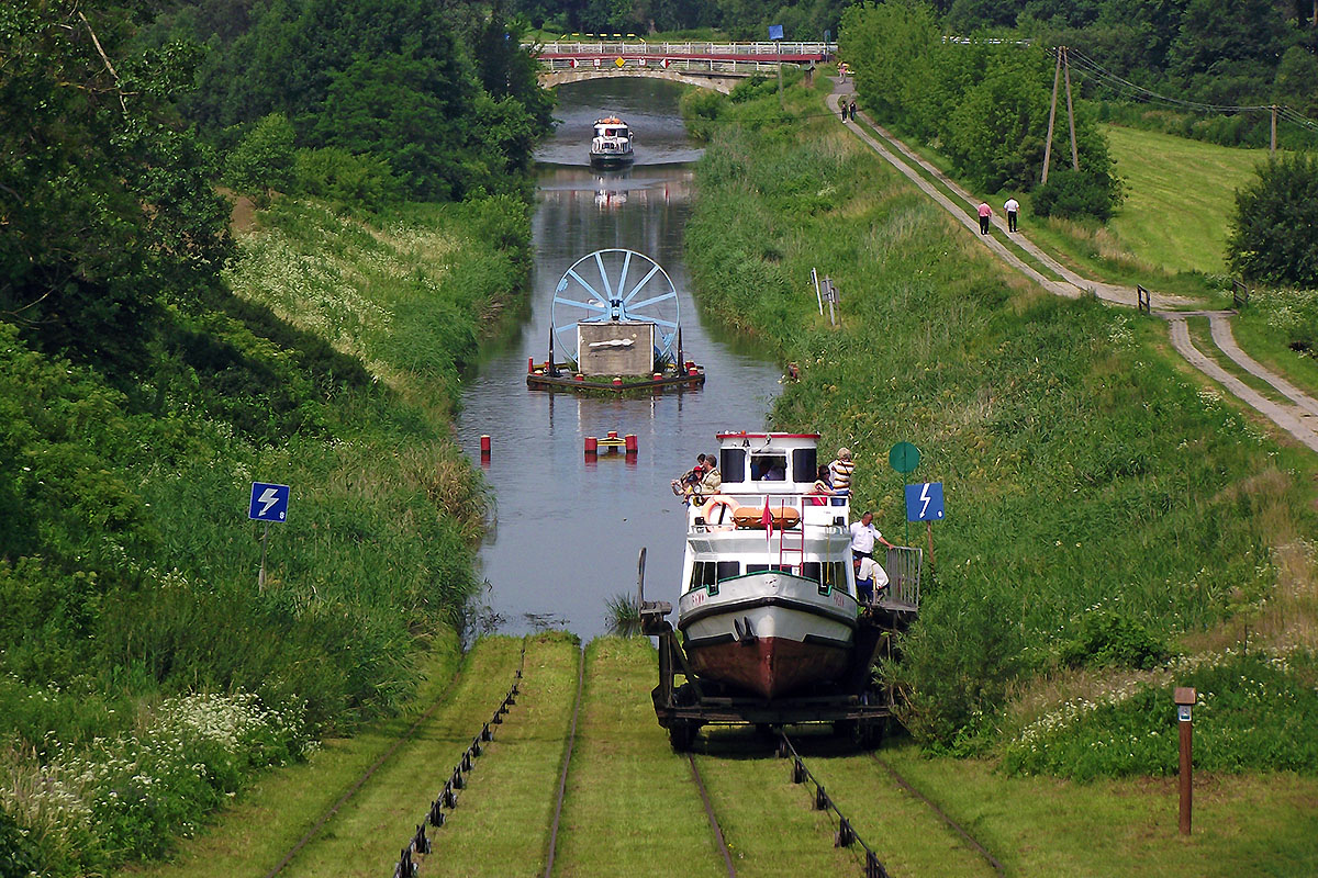 Kanał Elbląski został zbudowany w połowie XIX wieku, by połączyć jezioro Jeziorak z Elblągiem. Ponieważ między Jeziorakiem a Elblągiem różnica poziomów wynosi 99,5 metra projektant kanału Georg Jacob Stenke zbudował system śluz i pięciu pochylni, które pomagają pokonać tę różnicę poziomów. Pochylnie polegają na tym, że statki wpływają na platformy, które po szynach są ciągnięte pod górę. Jest to ogromna atrakcja turystyczna, jedyna tego typu w kraju i nieliczna na tle świata.