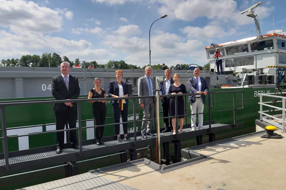 Wraz z przepłynięciem bezemisyjnego pchacza »Elektra« otwarto dla ruchu żeglugowego drugą śluzę Wusterwitz.