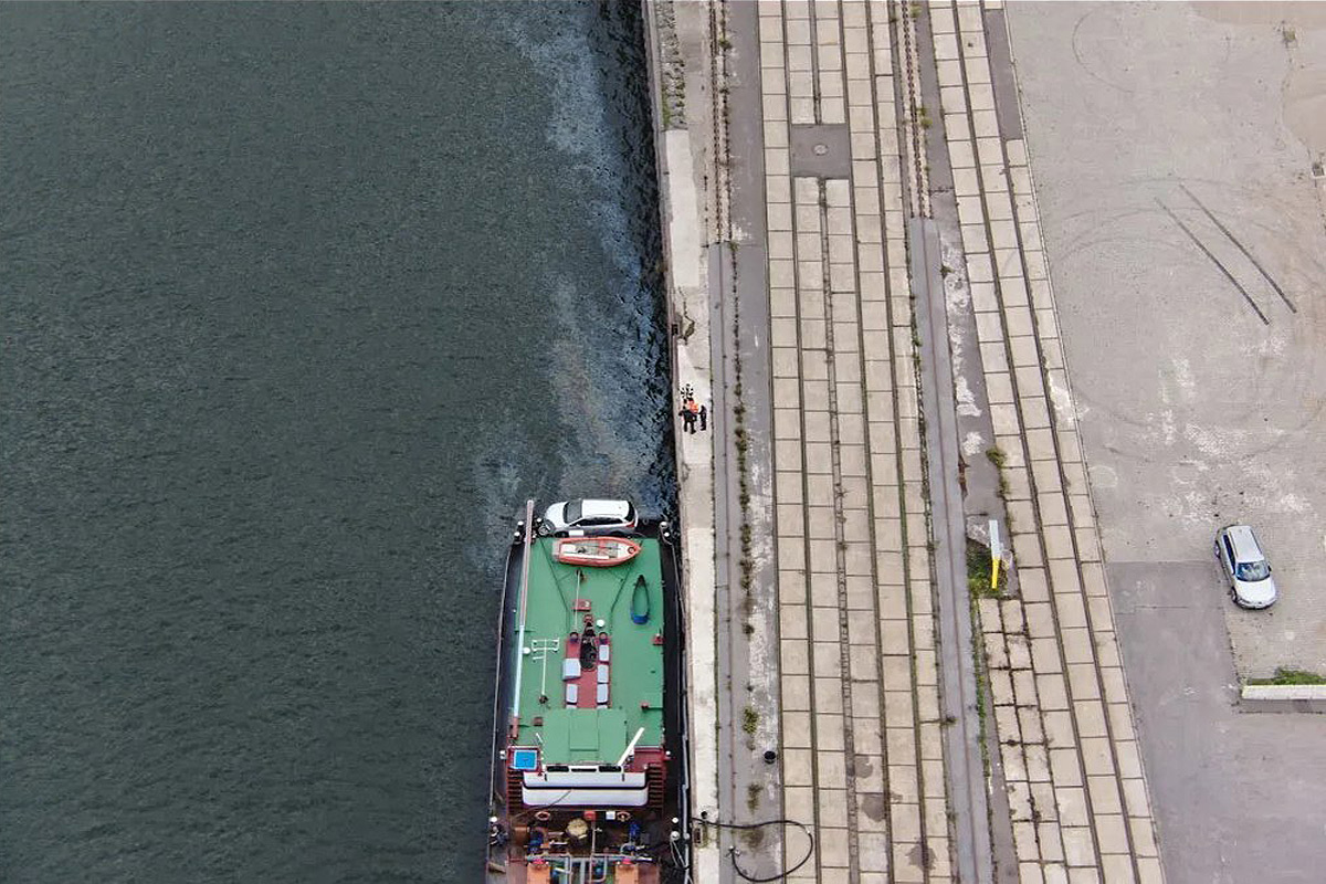 W Kanalhafen w Magdeburgu załoga policyjnego radiowozu zauważyła zanieczyszczenie wody wokół zacumowanego w porcie tankowca.