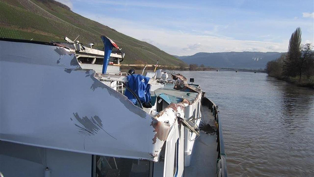 Tankowiec zderzył się z mostem drogowym Schweich. Sterówka została poważnie uszkodzona. Nie można było kontynuować rejsu