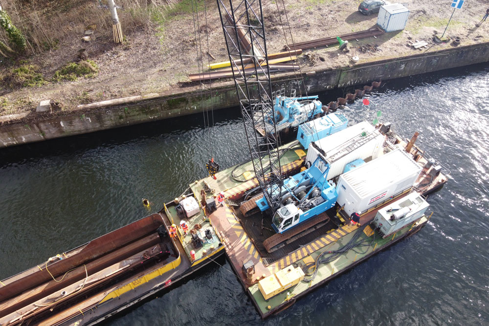 W obszarze „Spandau Horn” najpierw wbijane są 10-metrowe stalowe grodzice, aby stworzyć poziom roboczy na czas budowy. Następnie takie prace będą kontynuowane w rejonie nowej "poczekalni", która ma powstać na północnym brzegu Sprewy i przebiegać dalej w kierunku Spandauer Horn.