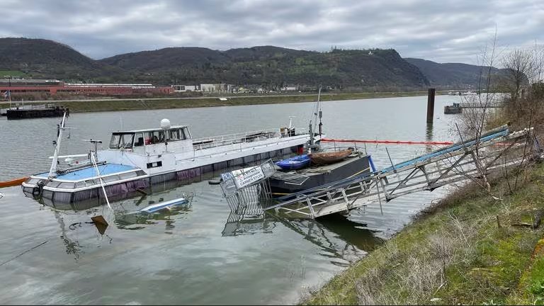 Według policji wodnej na miejscu jest już przedstawiciel Sądu Rejonowego w Sinzig. Powinien wyjaśnić, kto jest odpowiedzialny za wydobycie statku i kto ma ponieść koszty. Były statek pasażerski, który według policji przebywa w basenie portowym od grudnia 2021 roku, początkowo miał przeciek we wtorek wieczorem. Następnie według informacji osiadł na dnie wraz z pomostem, do którego był przycumowany