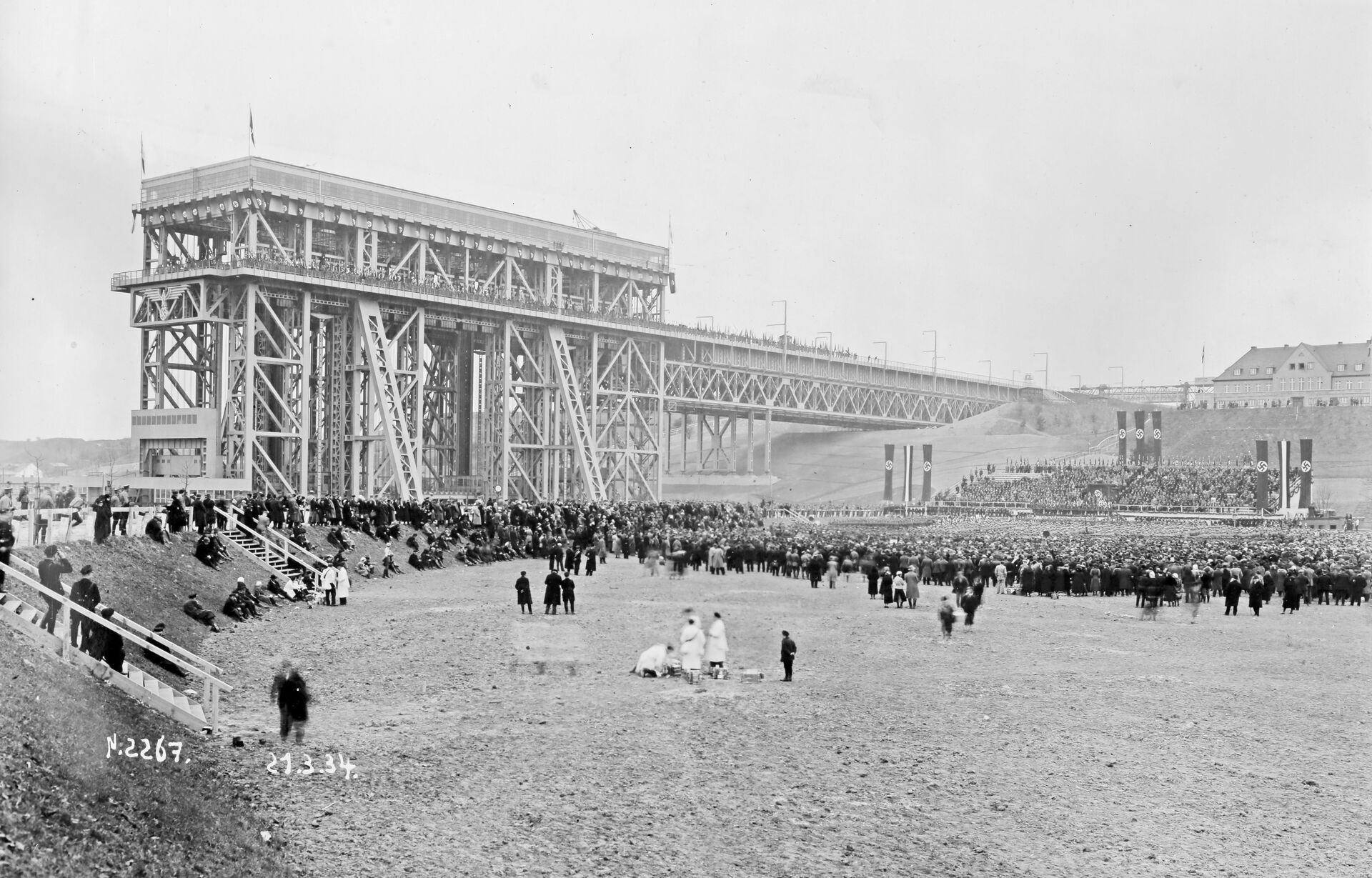 Kiedy winda została oddana do użytku 21 marca 1934 roku (na zdjęciu ceremonia otwarcia), była nie tylko arcydziełem inżynierii z imponującą stalową ramą, ale także najwyższą windą dla statków na świecie o całkowitej wysokości 60 metrów. Podróż wanną o długości 83,5 m, która może przewozić statki o masie do 1000 ton, zajmuje około pięciu minut.